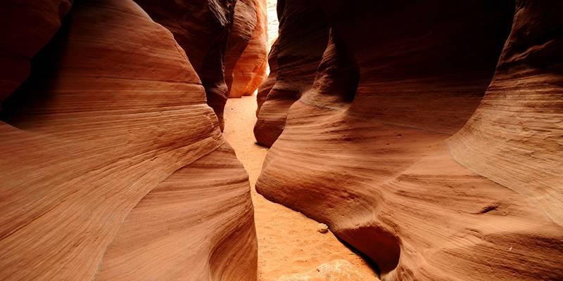 There is little to no cell service for large stretches. Good footwear with grip matters on slickrock. A light layer helps with the wind that can cut the heat off your skin in a minute. If the forecast calls for storms, remember that flash floods can run down nearby slots and washes even when the sky above you looks clear.